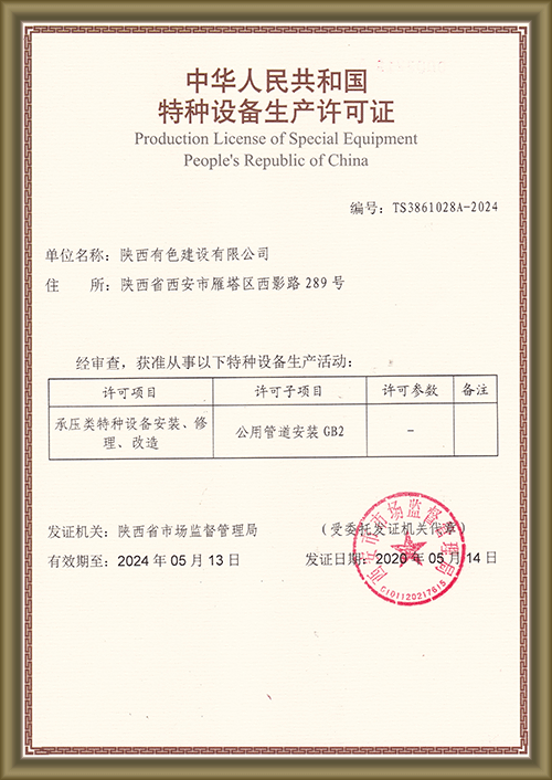 Special equipment production license of the People’s Republic of China